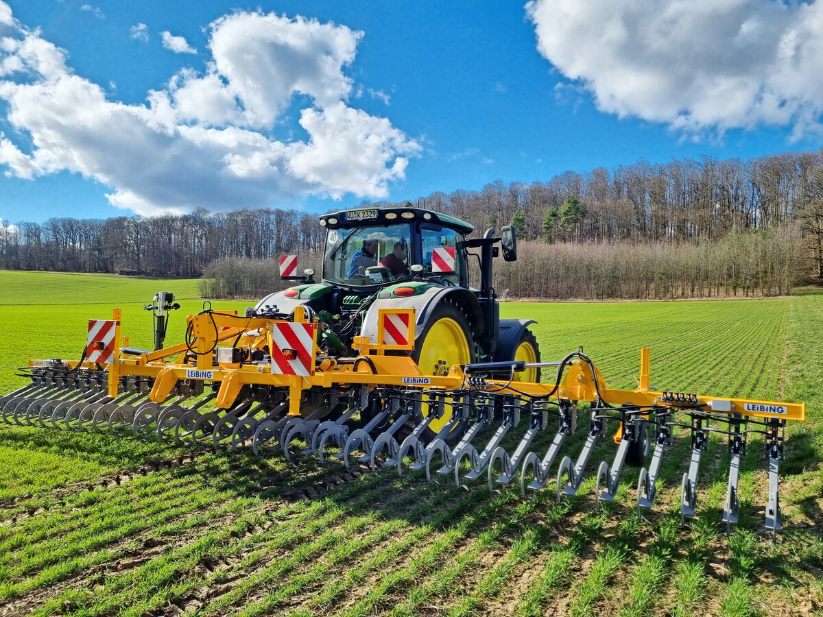 Die einstellbare Schar-Geometrie der Neun-Meter-Sichelhacke ermögliche es, ein optimales Verhältnis von Schnitt und Häufeln zu erzielen. Die Arbeitsgeschwindigkeit beträgt bis zu 15 Kilometer pro Stunde. Mit 1,95 Tonnen bei 37 angebauten Hackelementen sei die Sichelhacke für Traktoren ab 120 PS geeignet. Ein weiteres Plus sei die hydraulische Vorspannung der Hackelemente. Es gibt auch eine Schaltung der 25 Teilbreiten per Section Control über Isobus. Der Anbau im Heck ist jetzt ebenfalls möglich.