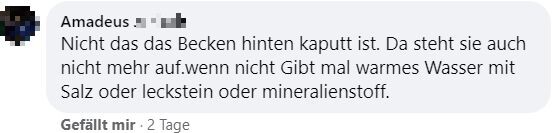 "Hallo zusammen, ich bräuchte mal eure Erfahrungen. Unsere Kühe haben letzten Samstag gerindert. Beim aufeinander rumspringen muss eine irgendwie blöd gefallen sein und steht seither nicht mehr auf. Tierarzt war zweimal da und hat Infusionen gegeben und Schmerzmittel und Cortison gespritzt. Beine und Hüfte scheinen in Ordnung. Aufrichten mit dem Radlader bringt nichts. Ansonsten waren die Tierärzte tiefenenspannt und sagen, man muss halt abwarten. Jetzt liegt sie seitdem und es ist keine Besserung in Sicht. Drehen tut sie sich selber, frisst auch aber steht einfach nicht auf. Hatte das schonmal jemand? Gibt es Hoffnung, dass sich das wieder gibt? Bin sehr hilflos gerade und fühle mich vom Tierarzt hängen gelassen." schrieb Maren Knödler hilfesuchend in die Facebookgruppe "Landwirtschaft". Das Blut sei untersucht worden und in Ordnung.