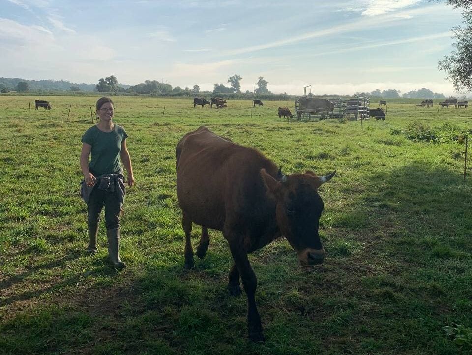 Anja Hradetzky ist Trainerin für wesensgemäße Tierhaltung und Demeter-Bäuerin. Auf ihrem Betrieb in Stolzenhagen halten sie und ihr Mann Janusz 170 Rinder, darunter 40 Milchkühe. Im Umgang mit den Tieren wendet Anja das Low Stress Stockmanship (LSS) an. Sie ist überzeugt, dass lautes Rufen oder der Griff zum Stock beim Treiben der Rinder nicht nötig sind.