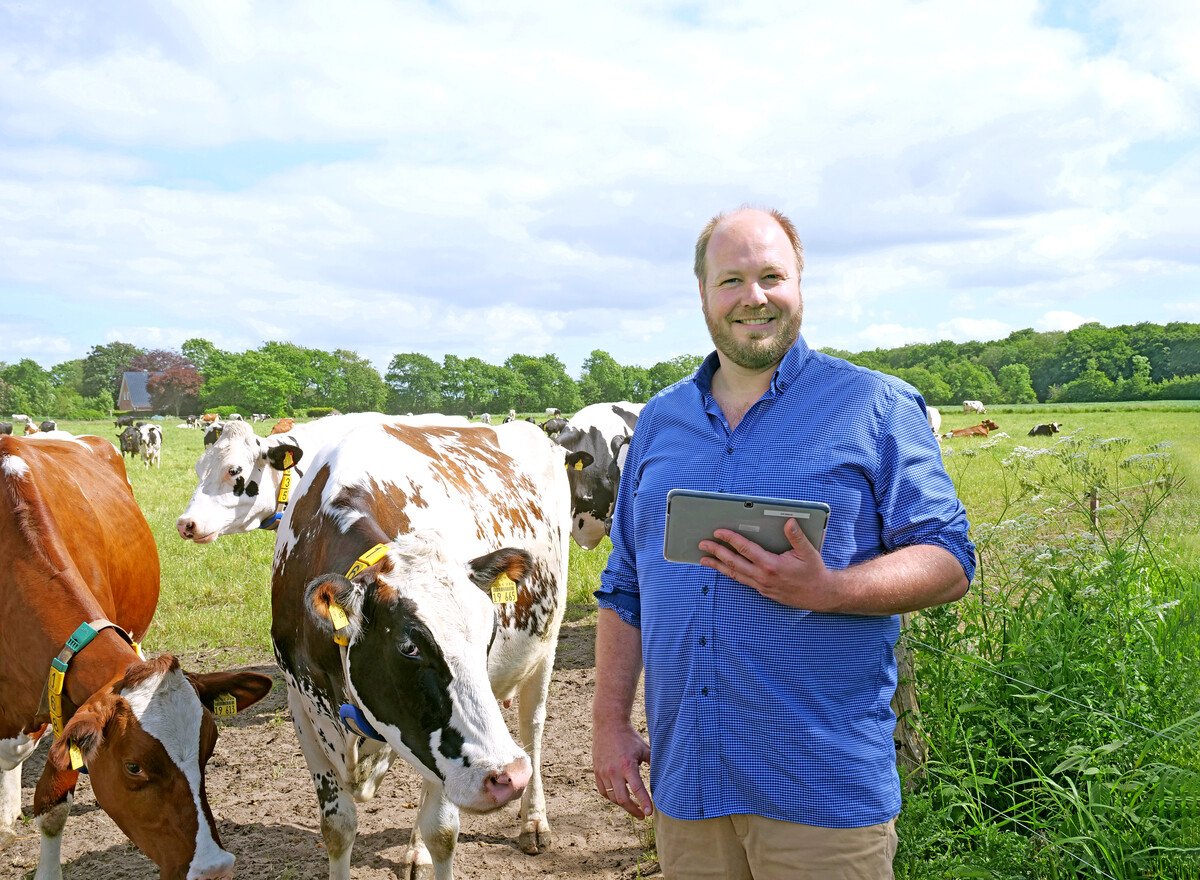 Jasper Metzger-Petersen leistet sich Luxus auf seinem Biobetrieb, dem Backensholzer Hof im schleswig-holsteinischen Oster-Ohrstedt. Er hat eine fest angestellte Mitarbeiterin mit Hochschulabschluss, die sich ausschließlich um die Auswertung der Daten aus dem Herdenmanagementsystem kümmert.