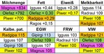Radraul schließt den Reigen. Er ist der klassische Doppelnutzungsbulle mit 100 MW und 109 FW. Die Melkbarkeit ist mit 107 (-1) als gut zu bezeichnen, aber sein Geburtsverlauf liegt mit 85 (+1) unterm Schnitt und er sollte nicht auf Rinder verwendet werden. In der Töchterbewertung ist Radraul in Bemuskelung, Fundament und Euter dreistellig. Im GZW liegt er bei 102.